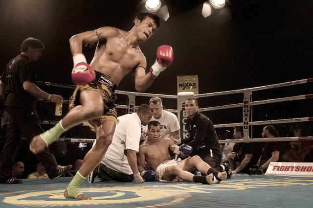 Op de kickboksgala's door heel Nederland wordt keihard gevochten. Van kleine zaaltjes tot de K1 in de Amsterdam Arena wordt er bikkelhard gestreden. William Diender gaat zwaar knockout in zijn gevecht tegen de Thai Orono tijdens het vechtsportgala Nederland versus Thailand, Slamm!! in Haarlem.