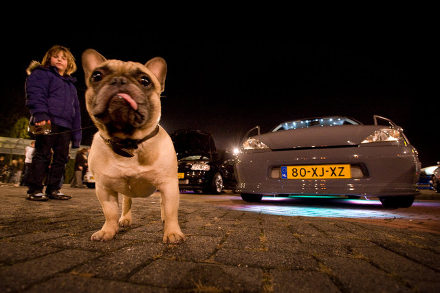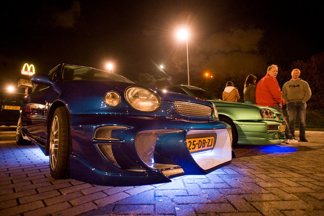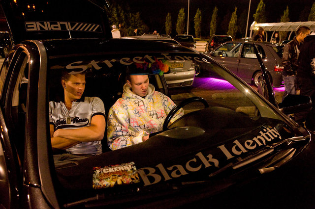 Leiden, transferium langs de A44 waar elke vrijdag jonge autoliefhebbers samen komen om te zien en gezien te worden met hun getunde auto's. Foto: Taco van der Eb